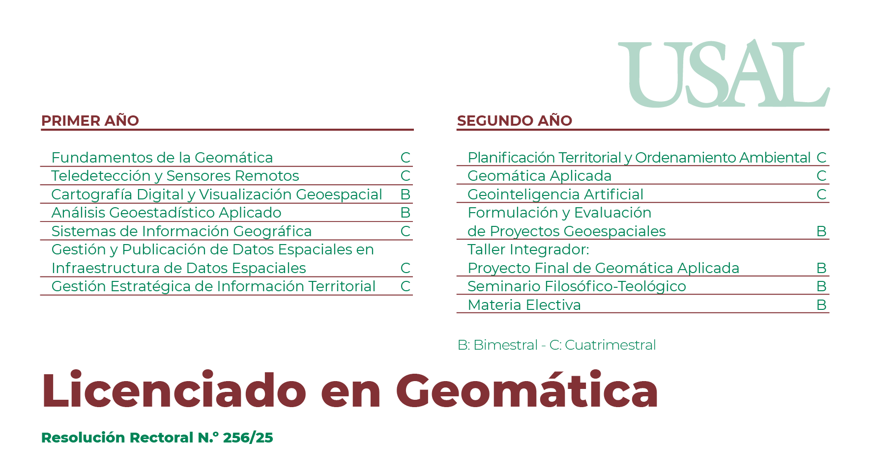 Las titulaciones de base deberán estar vinculadas a los siguientes campos disciplinares y/o profesionales: Geomática, geografía, cartografía, arquitectura, agrimensura, topografía, sistemas de información geográfica, teledetección, geodesia, geo informática, medio ambiente, urbanismo, ingeniería en sistemas, ciencia de datos, ciencias sociales.