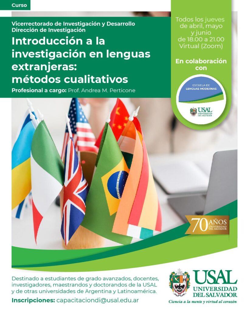 En el ámbito de las lenguas extranjeras y la lingüística aplicada existe, en nuestro país, una comunidad profesional numerosa y altamente formada que muestra un interés creciente por desarrollar proyectos de investigación vinculados con la enseñanza, el aprendizaje y la adquisición de segundas lenguas. Sin embargo, esta demanda convive con una vacancia formativa evidente: no se ofrecen espacios sistemáticos y específicos que introduzcan a docentes, traductores y profesionales afines en los fundamentos metodológicos propios de la investigación en lenguas extranjeras. La ausencia de una formación metodológica diferenciada, que contemple los enfoques cualitativos y su aplicación concreta al estudio de fenómenos lingüísticos, limita las posibilidades de producir conocimiento riguroso y de orientar adecuadamente tesinas, trabajos finales de licenciatura y proyectos de tesis. Este curso busca cubrir esta necesidad mediante una formación accesible, actualizada y contextualizada en problemáticas reales del campo. Introduce a los estudiantes a la investigación en lenguas extranjeras desde un enfoque cualitativo. Provee herramientas metodológicas cualitativas para explorar la complejidad de los contextos educativos, las trayectorias de los aprendices y docentes, las interacciones en el aula y los factores sociales, afectivos y discursivos que intervienen en el aprendizaje y la enseñanza de lenguas extranjeras. Los participantes podrán adquirir herramientas y competencias metodológicas esenciales para iniciarse en la investigación, participar de equipos académicos y fortalecer el desarrollo del área.