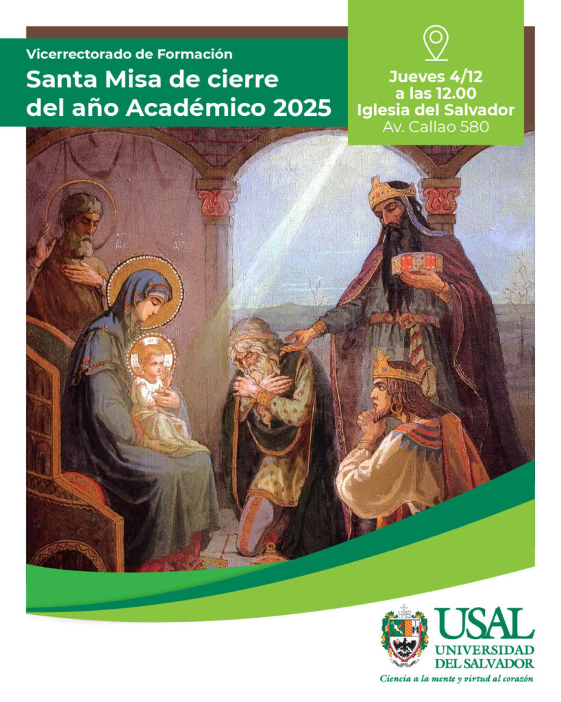Los invitamos a participar de la Santa Misa de cierre del año académico 2025.Agradecemos un año más de trabajo compartido en comunidad universitaria, que nos permite honrar nuestro compromiso con la educación integral y con el legado de Francisco.