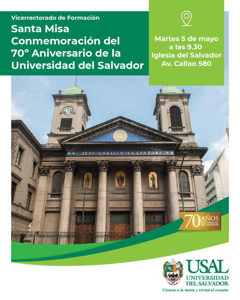 Con motivo de la Conmemoración del 70º Aniversario de la Universidad del Salvador realizaremos el martes 5 de mayo a las 9.30 h en la Iglesia del Salvador, Av. Callao 580. Los esperamos.